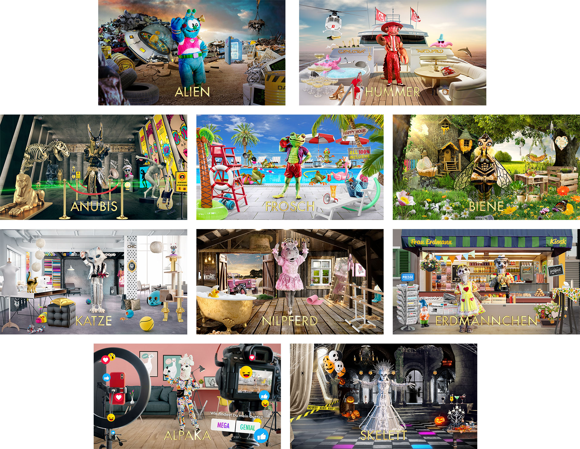 For the 3rd season I was commissioned by Seven.One Entertainment to develop and animate tiny little worlds for the ten masked characters. Enriched with lots of details these settings act as surroundings for the characters to live in and provide indications to reveal their real identities.