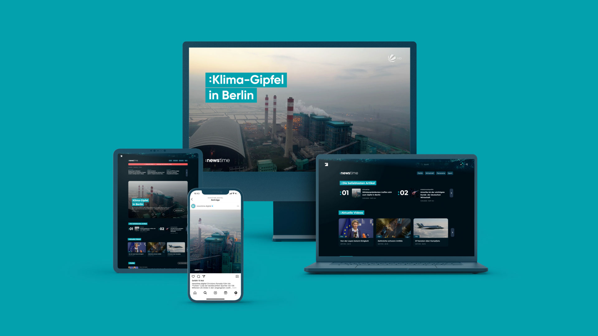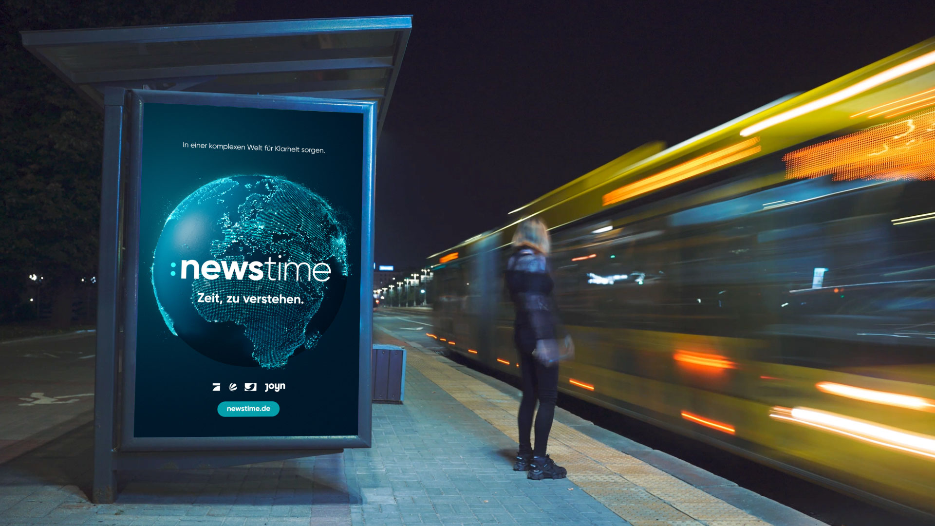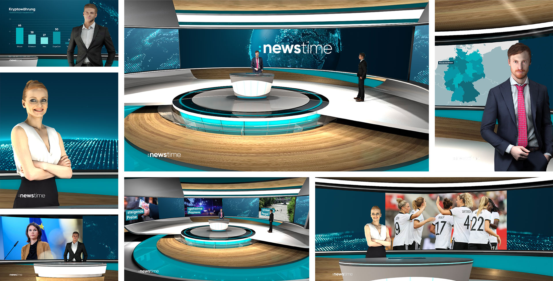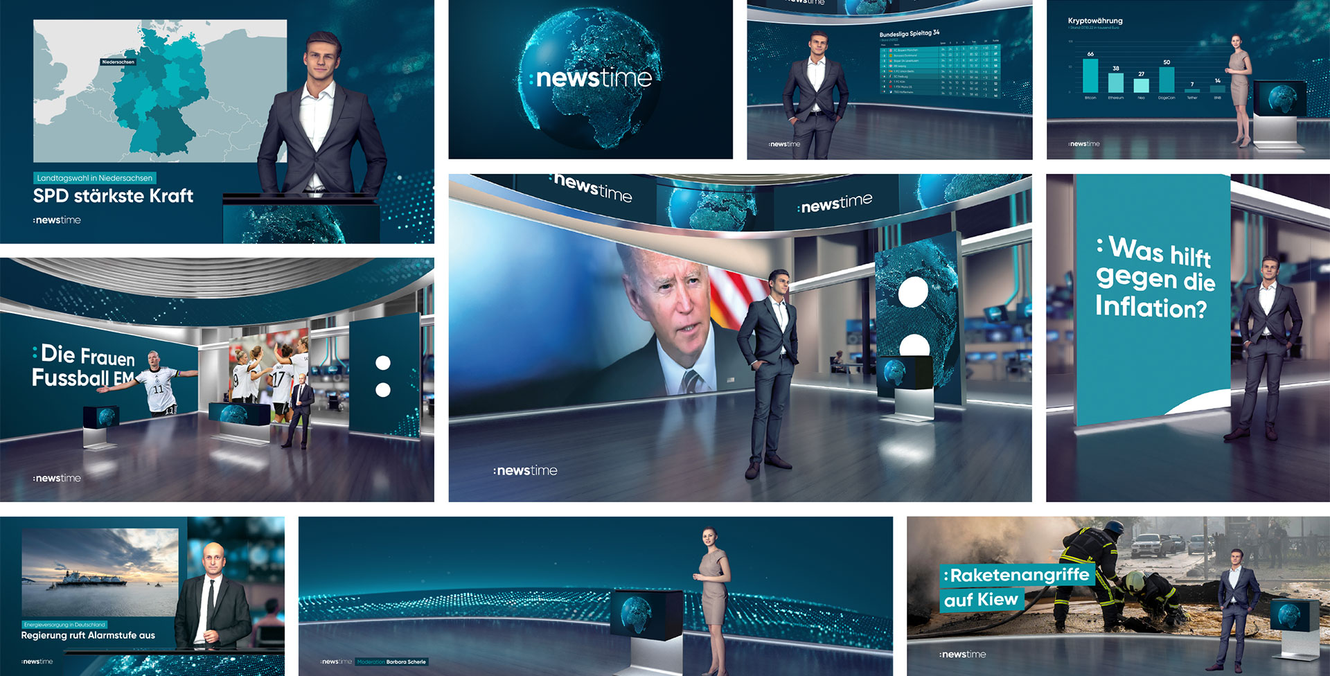 Since June 19, 2023, German TV channels ProSieben, SAT.1 and Kabel Eins concentrate their information and news competencies under the new brand :newstime. All news programs of the TV stations as well as all digital news activities and those on the streaming platform Joyn are now bundled under the same name.